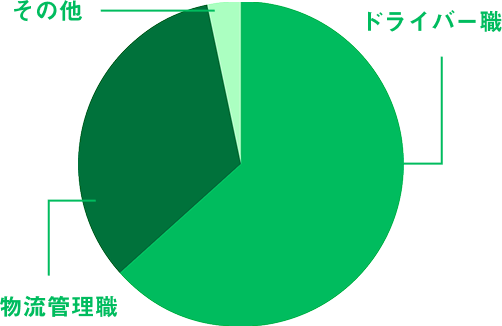 ドライバー職と物流管理職が会社の大部分を占め、日々の配送と現場運営を支えています。役割を分担しながら、スムーズな物流を実現しています。