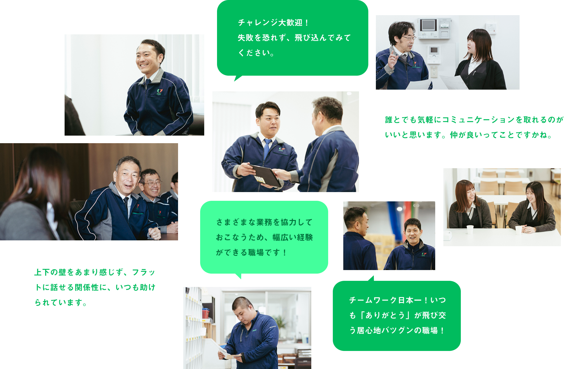 一人で抱え込まず、仲間同士で声を掛け合う文化が根づくオカケンの現場。